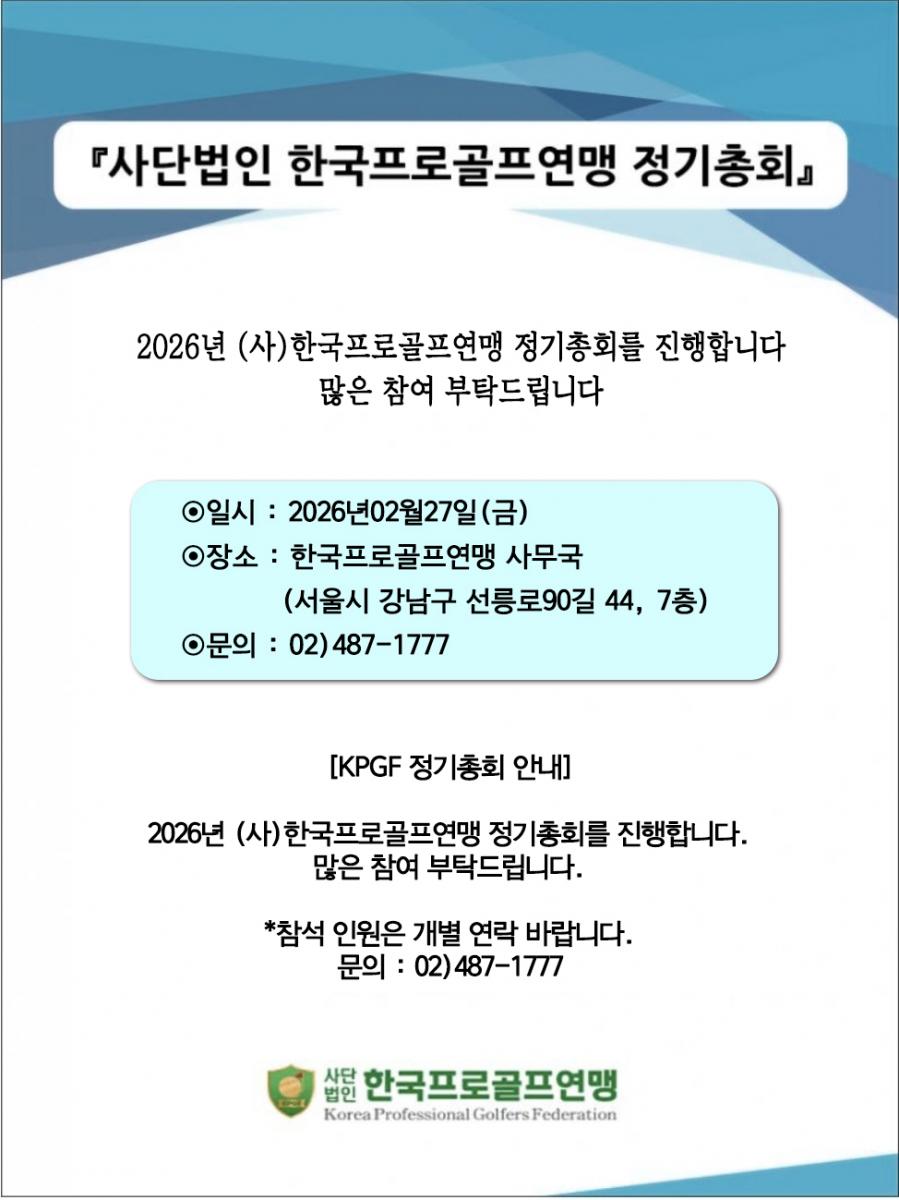 [공지] 2026 한국프로골프연맹 정기총회